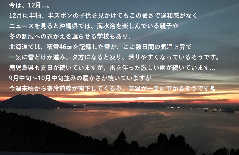 12月に半袖、半ズボンの子供を見かけてもこの暑さで違和感がなく ニュースを見ると沖縄県では、 海水浴を楽しんでいる親子や