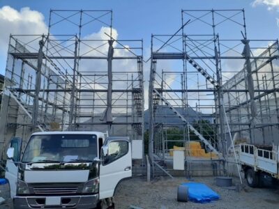 霧島市を拠点に鹿児島県内・南九州エリアで足場工事・仮設工事一式を行う鹿児島総建株式会社。 低層一般住宅から中高層建築まで、安全・迅速な施工に対応しています。 解体工事、土木工事、コンクリート打設、建設機械オペレーター業務もお任せください。 お見積りのみのご相談も承っております。 / 鹿児島総建株式会社|霧島市の足場工事・仮設工事一式・解体・土木工事対応