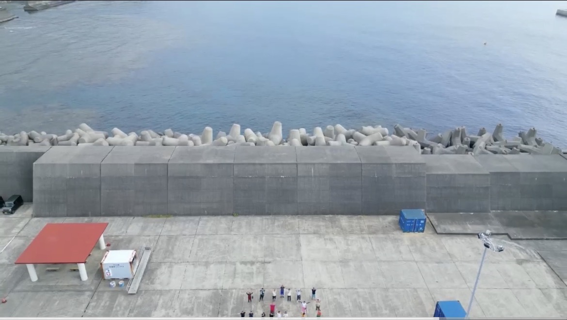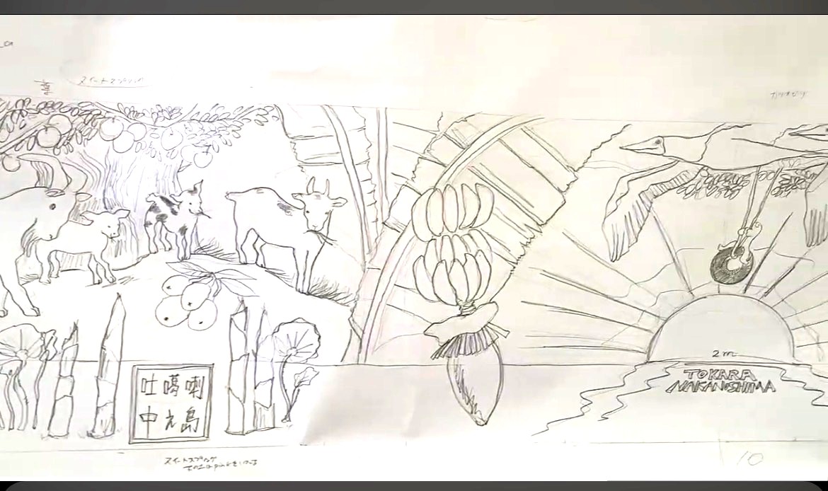 今回、離島(十島村・中之島)のお客様よりご依頼いただきまして、中之島新港の4m×60mに壁画を完成させる